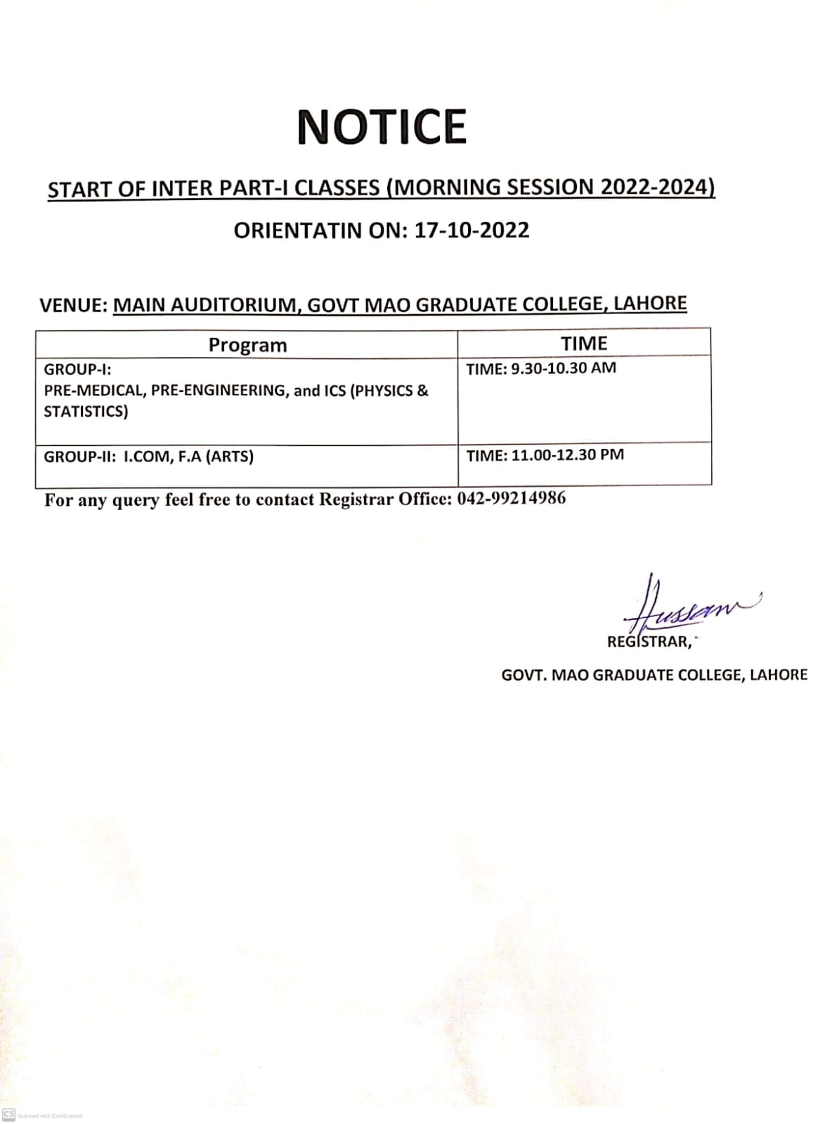 Orientation Intermediate Part-I (2022-24)
