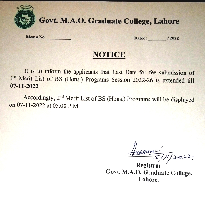 Date Extended for Fee Submission BS (Hons.)